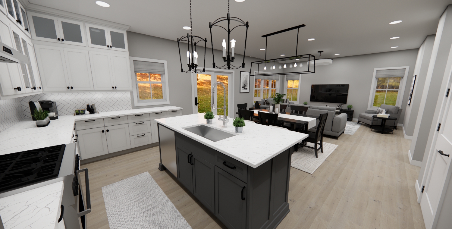 This charming farmhouse boasts a generous 1876 square feet of living space, artfully designed to combine modern comfort with rustic appeal. The open floor plan invites you into a great room adorned with multiple windows, flooding the space with natural light and offering picturesque views of the surrounding landscape. The heart of this home is the spacious kitchen, a culinary haven complete with numerous cabinets for ample storage. It features a large island with seating for three, perfect for casual dining or entertaining. Adjacent to the kitchen is a cozy dining area, which opens through sliding doors to the backyard, blending indoor and outdoor living seamlessly. For those who work from home or need a quiet retreat, a main level office provides the ideal solution. Upstairs, the master suite is a sanctuary of its own, featuring a private bath and a walk-in closet, ensuring both luxury and convenience. The upper level also houses a dedicated laundry room strategically placed just steps from all three bedrooms, making laundry day a breeze. This thoughtfully designed farmhouse combines functionality with charm, offering a warm and inviting space for families to create lasting memories.